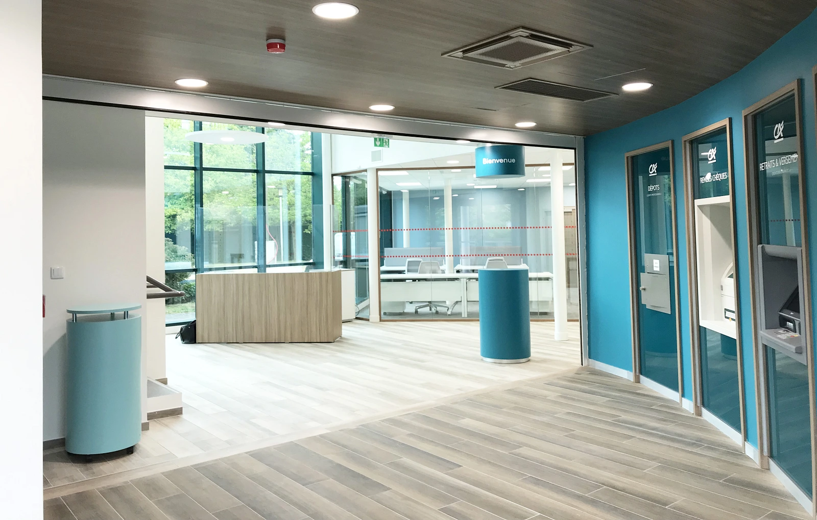 Rénovation complètes des agence Crédit Agricole des Hauts de France selon leur concept.